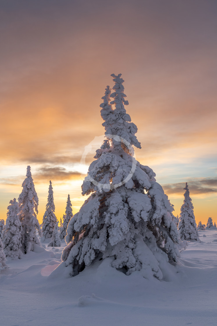 Magical sunrise at Riisitunturi National Park, Lapland, Finland