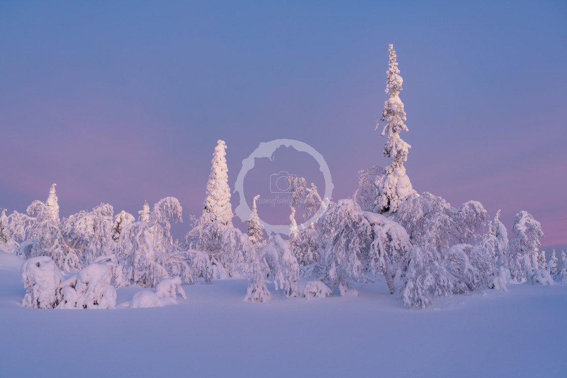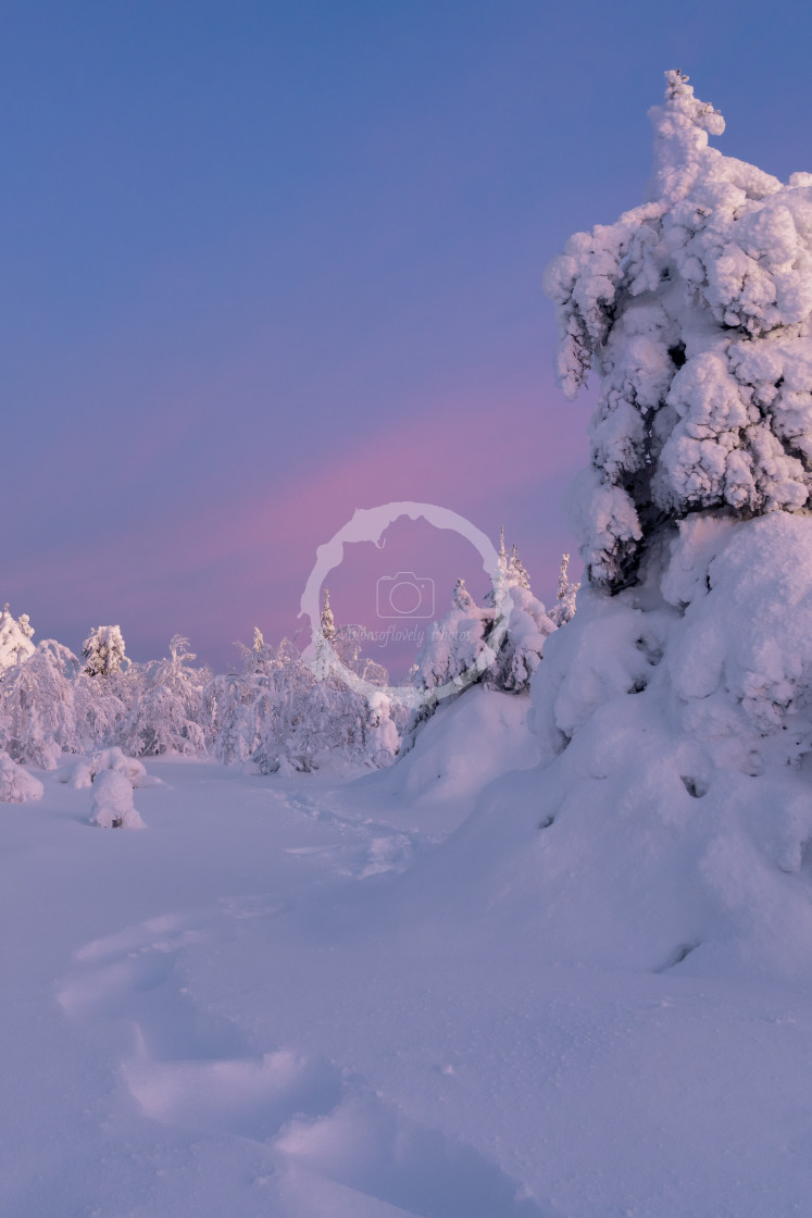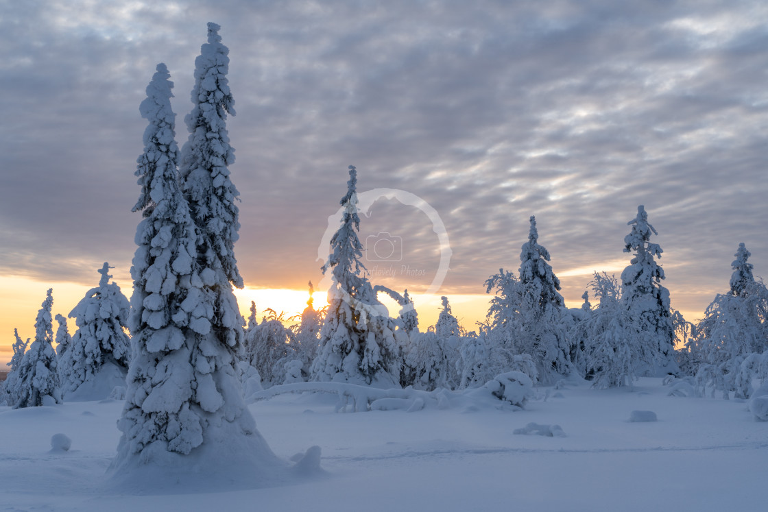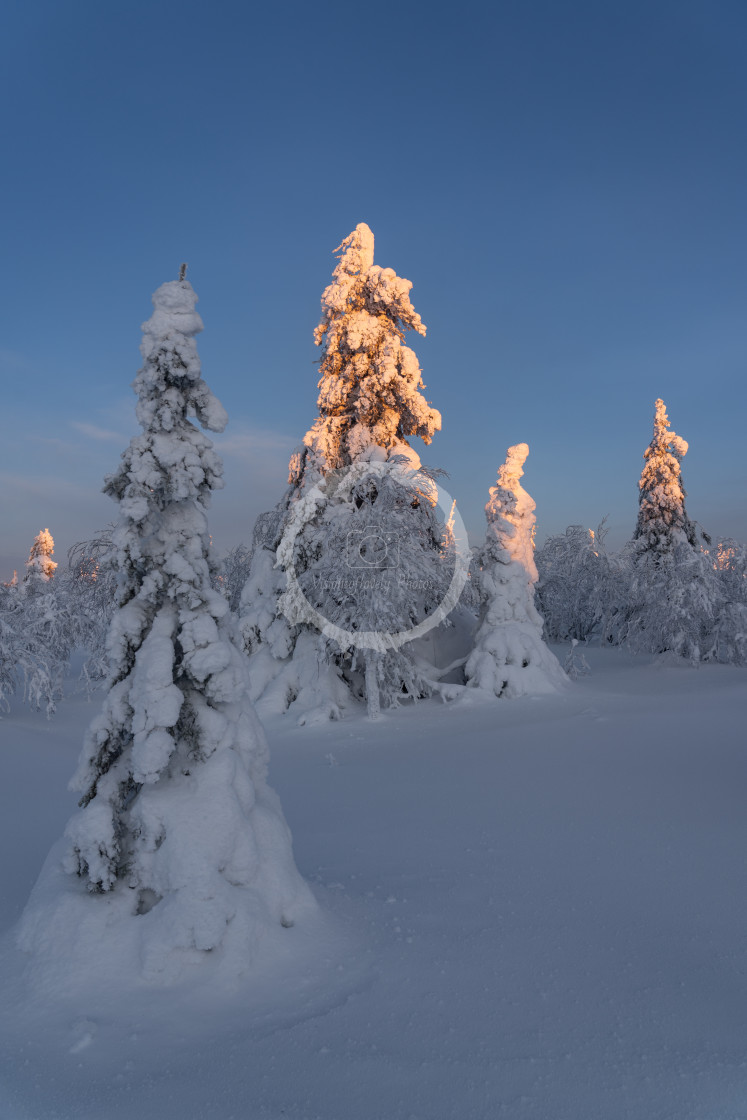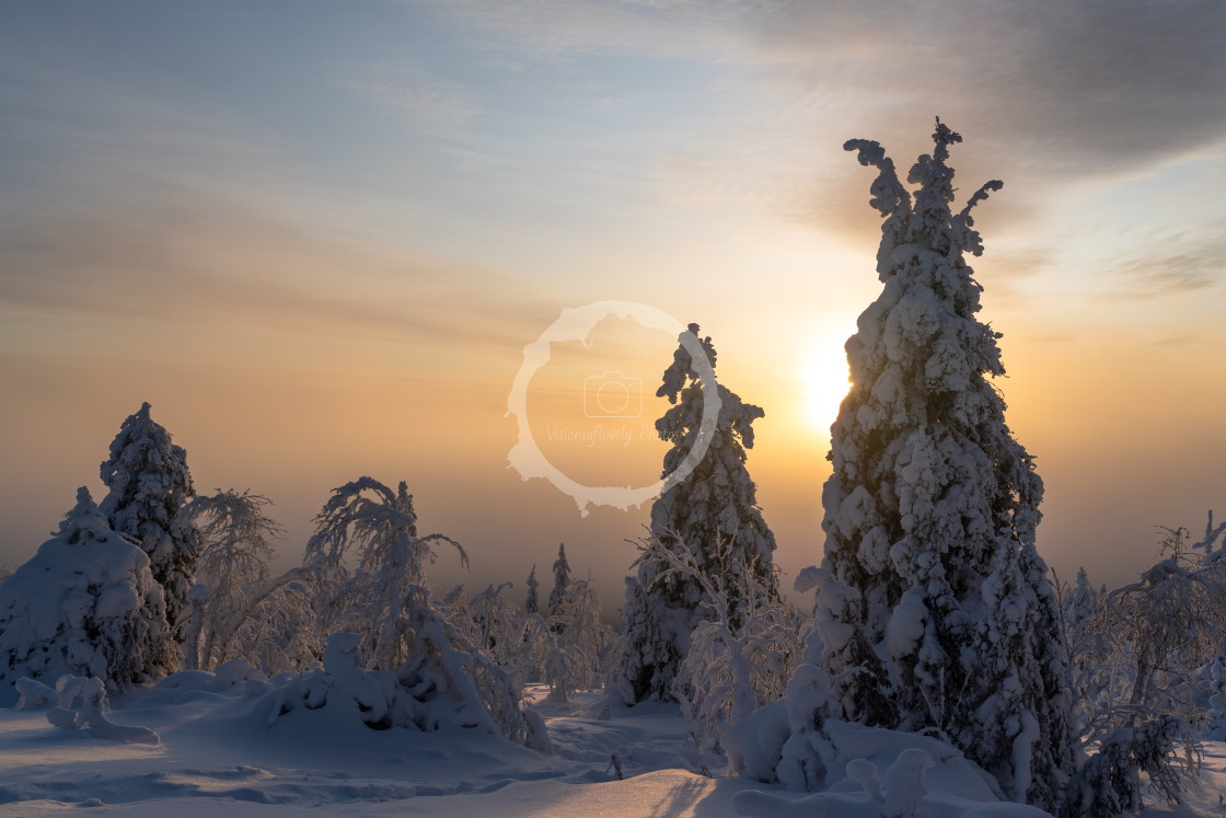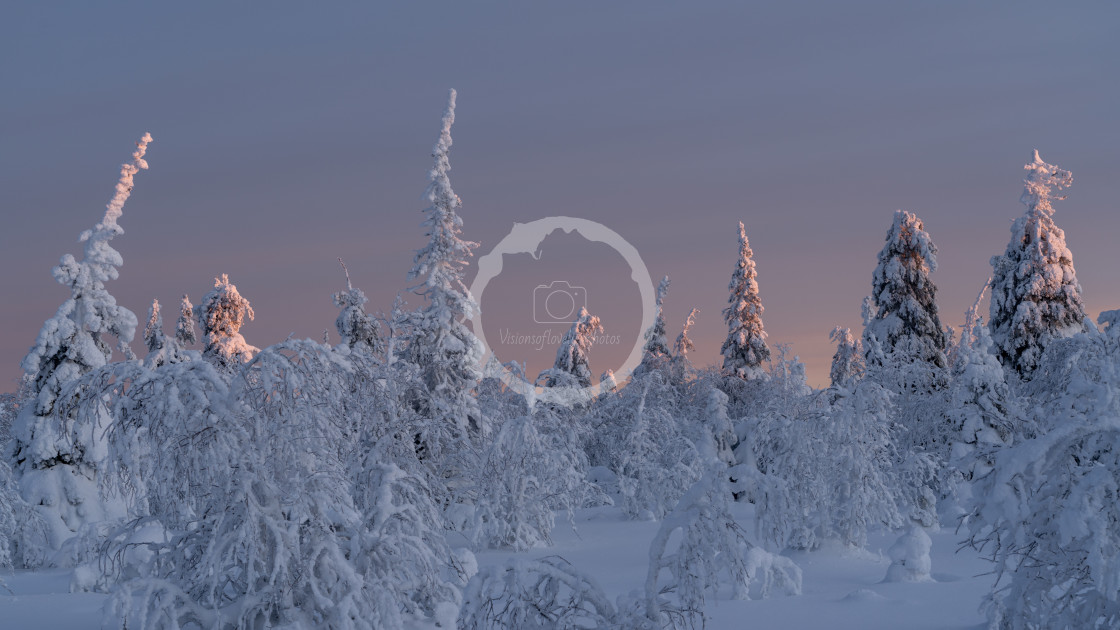 These are photos taken in January 2025 in Kuntivaara - Lapland, Finland. It was quite warm on this day and almost no wind. The sunrise and the light were magical and it was nice not to work in -20 degrees weather. Unfortunately the snow from the trees melted the next day. But I'm really happy I was fortunate to see it and photograph it before it went away.